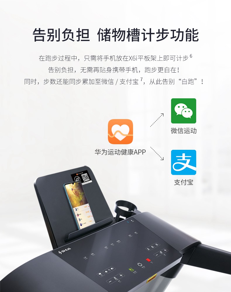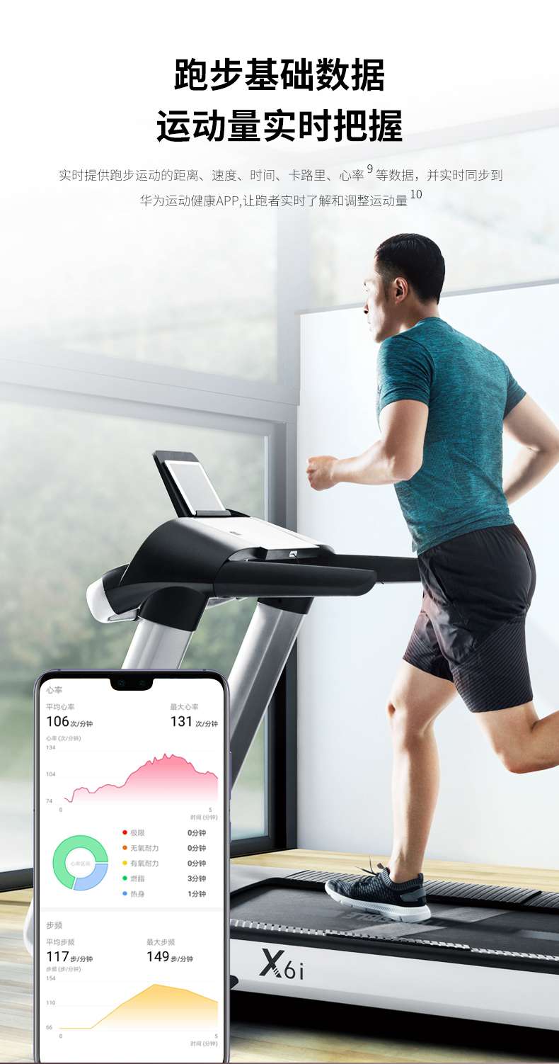 kaiyun开云电竞跑步机-X6心率跑步机,可根据用户运动是实时心率,跑步机自动调节跑步速度、坡度等进行运动强度的调节,更科学;X6i华为版跑步机,可以通过连接华为运动健康APP,监测多种类型跑步数据。欢迎来电咨询~