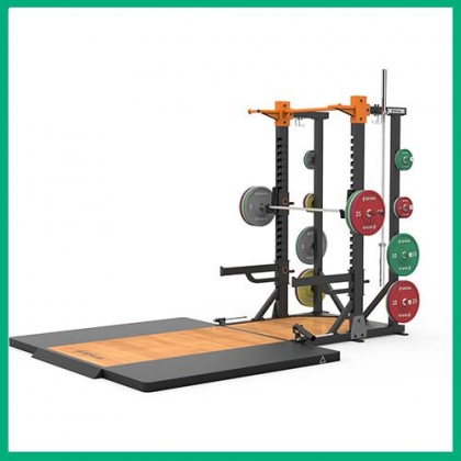 功能区:杠铃片整组挂架、万向炮筒、举重杆保护架、单杠架、弹力带挂架