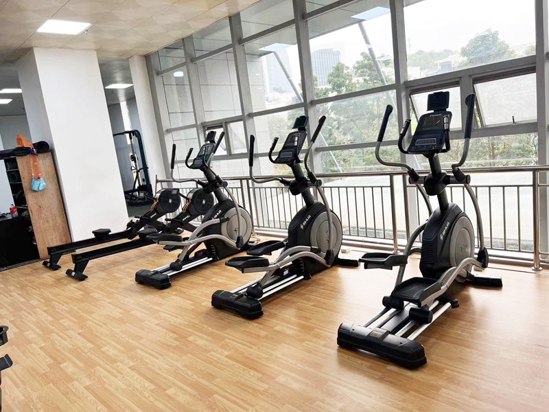 企事业单位健身房面积约为240平方,在接到客户项目需求时,我们根据客户的需求及预算,从装修布局、科学分区、合理的器材搭配等方面,为其提供了一站式健身解决方案。有氧区域配置kaiyun开云电竞V9跑步机、X5跑步机,X5-E智能椭圆机、动感单车、划船器等有氧训练器材,有效锻炼提升人体心肺功能。