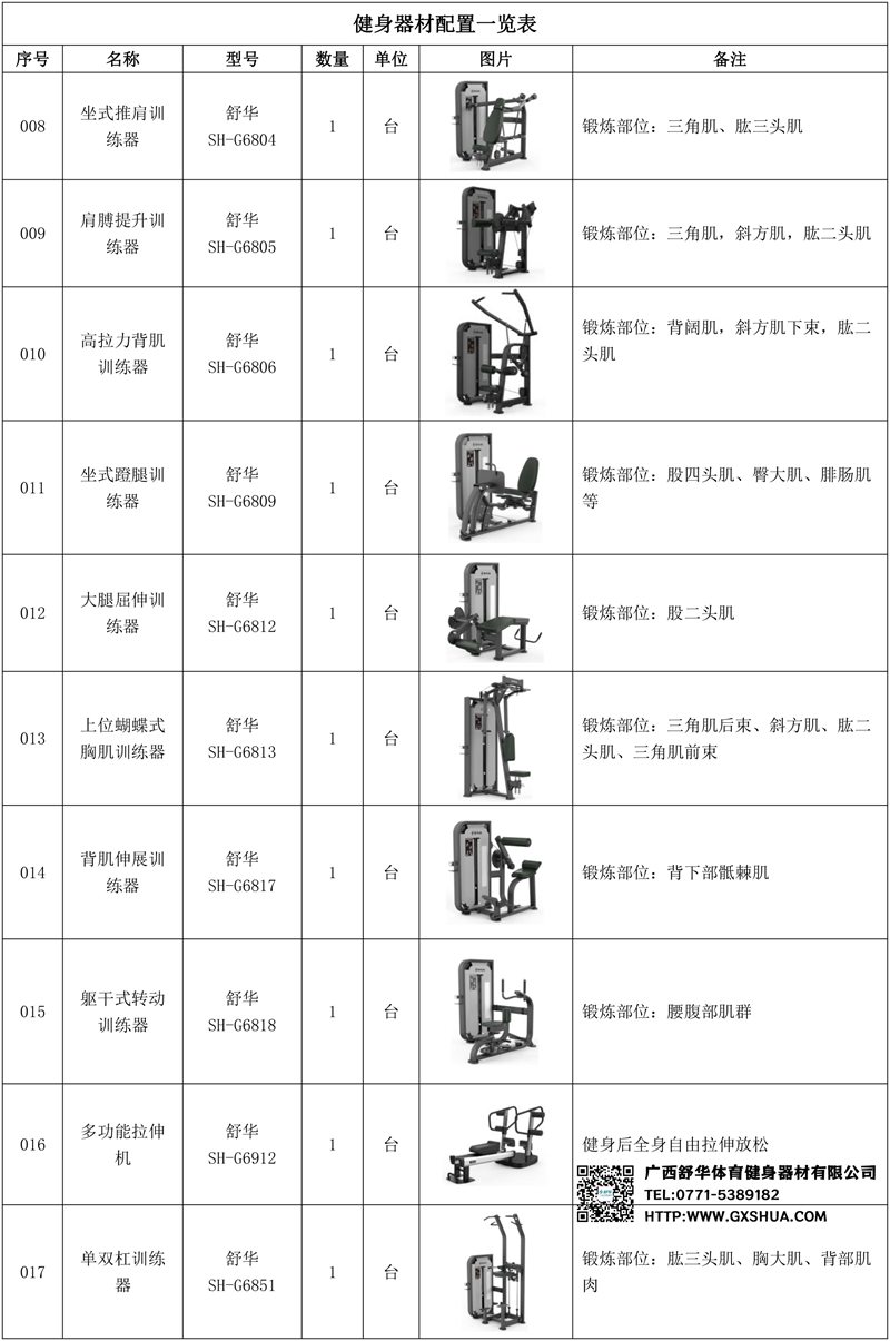 9.kaiyun开云电竞肩膊提升训练器SH-G6805*1台-主要针对三角肌、斜方肌和肱二头肌等肩部和上肢肌肉群进行锻炼,能够有效增强这些肌肉的力量和耐力,塑造完美的肩部线条和上肢肌肉轮廓。肩膊提升训练器配备了多档位的调节功能,可以根据使用者的身高、臂长以及不同的训练阶段和训练目标,灵活调整训练的角度和阻力,满足个性化的训练需求,无论是初学者还是专业健身人士都能找到适合自己的训练强度。