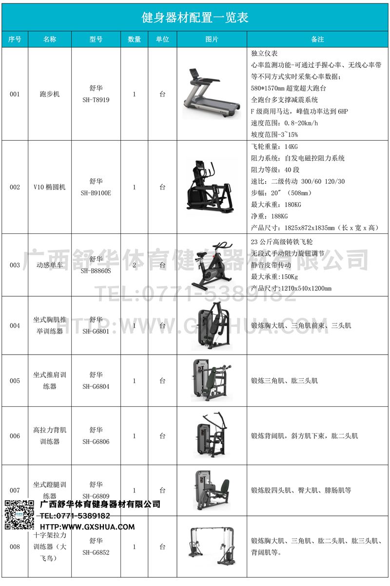 1.kaiyun开云电竞V9跑步机SH-T8919*4台-580*1570mm超宽超大跑台-跑感舒适,跑台整体安全稳定;全跑台多支撑减震平台,保证跑台超强支撑力,达到180kg支撑,满足专业健身房需求。F级商用马达-超强马达,AC 3.0HP 交流,峰值功率达到6HP,F级商用品质。速度范围达到0.8-20km/h;V9跑步机可实现跑台扬升功能,坡度范围-3~15%,满足客户不同的锻炼需求。