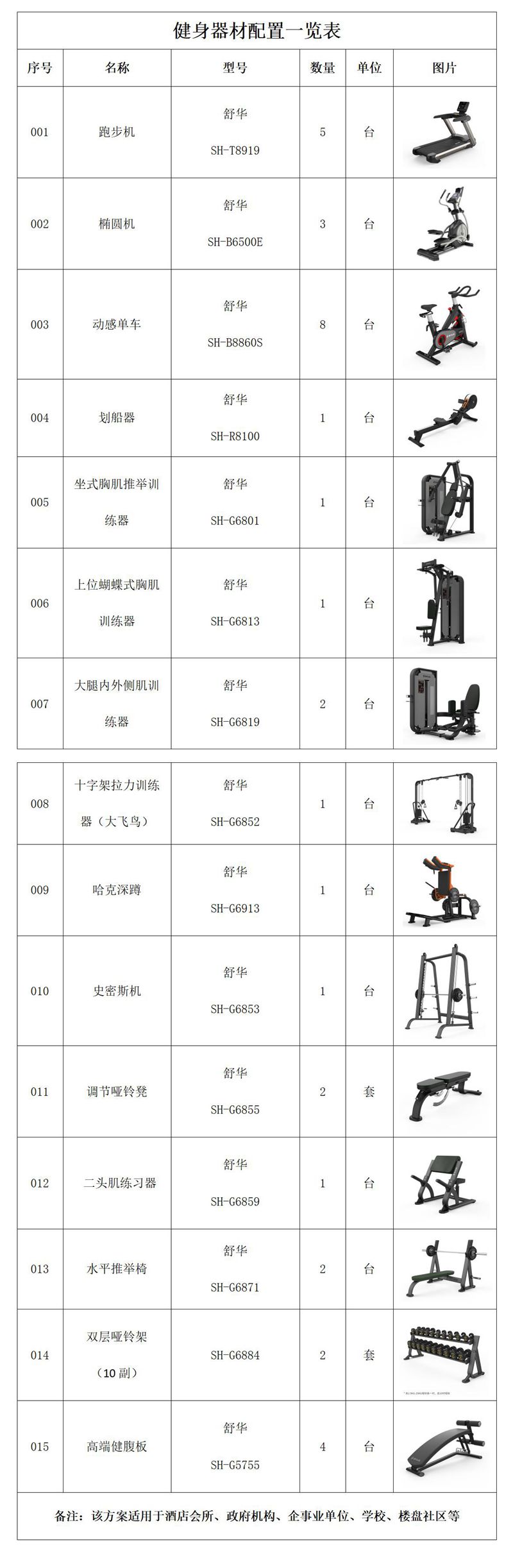 健身器材配置说明