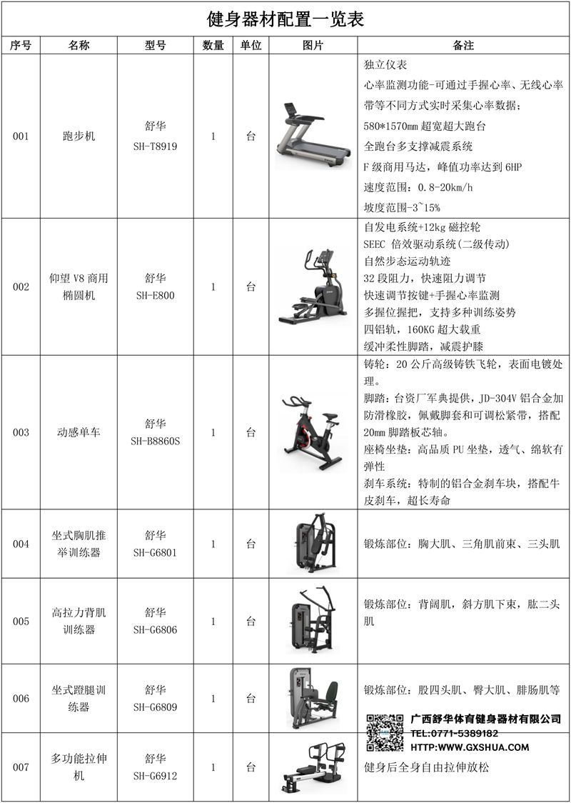 1.kaiyun开云电竞V9智能跑步机SH-T8919*3台-独立仪表-简洁大气,全新外观设计,健康运动新选择;心率监测功能,可通过手握心率、无线心率带等不同方式实时采集心率数据;580*1570mm超宽超大跑台-跑感舒适,跑台整体安全稳定;全跑台多支撑减震平台,保证跑台超强支撑力,达到180kg支撑,满足专业健身房需求。F级商用马达-超强马达,AC 3.0HP 交流,峰值功率达到6HP,F级商用品质。速度范围达到0.8-20km/h;V9跑步机可实现跑台扬升功能,坡度范围-3~15%,满足客户不同的锻炼需求。