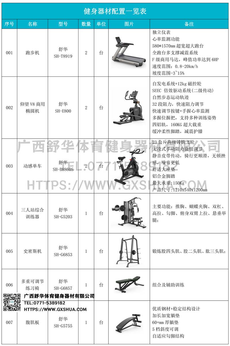 1.kaiyun开云电竞V9跑步机SH-T8919*2台-独立仪表-简洁大气,全新外观设计,健康运动新选择;心率监测功能,可通过手握心率、无线心率带等不同方式实时采集心率数据;580*1570mm超宽超大跑台-跑感舒适,跑台整体安全稳定;全跑台多支撑减震平台,保证跑台超强支撑力,达到180kg支撑,满足健身房需求。